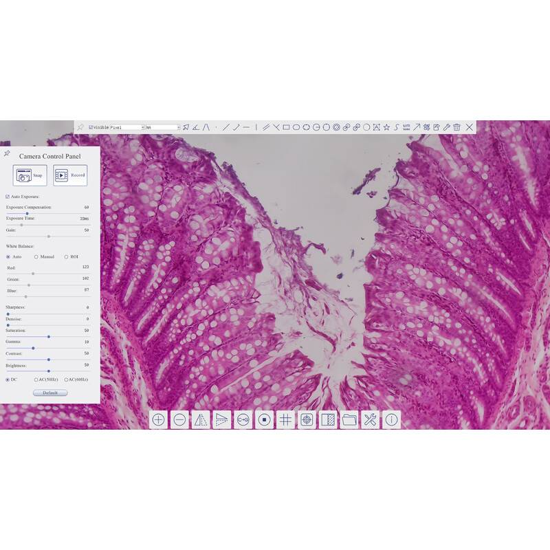 The second connection option is USB. Here the camera is connected to a computer via USB and can be operated via the ToupView software. This user interface can be seen in example image 2.